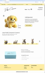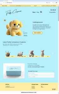 Der Webshop Fluffy Companion bietet die Möglichkeit, individuelle Plüschtiere zu gestalten. Nutzer können durch einen interaktiven Konfigurator verschiedene Farben, Accessoires und Verpackungen auswählen, um ihr einzigartiges Lieblingswesen zu erschaffen.